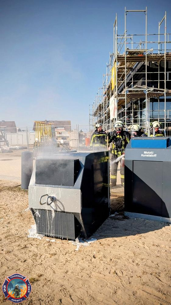 Der brennende Inhalt eines Müllcontainers konnte durch den Schnellangriff des HLF abgelöscht werden.