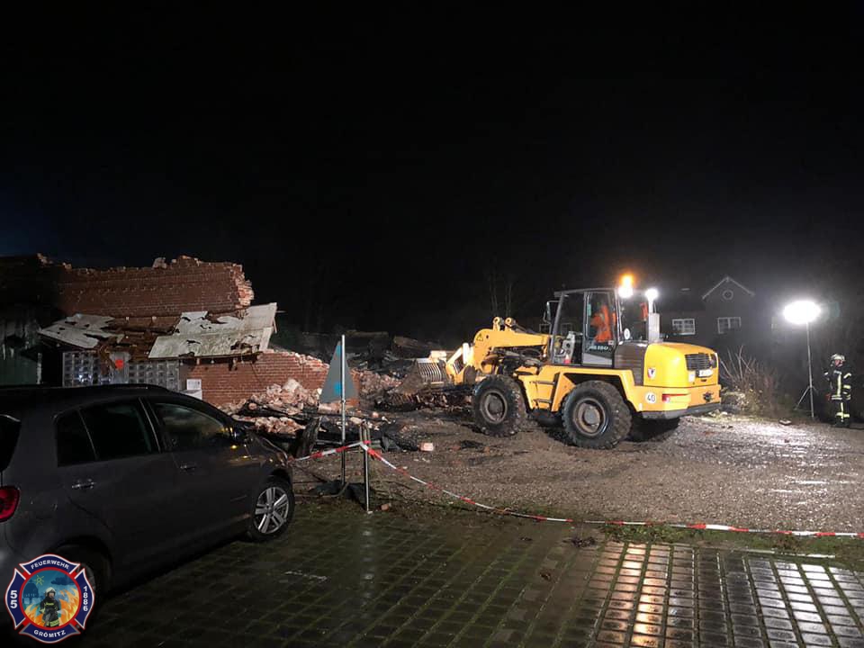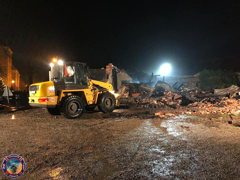 Alte Einsatzstelle qualmt wieder auf -> Zum dritten Mal führte uns die Alarmierung in den Schulweg 1. Wieder kam es im Schutthaufen der abgebrannten Halle zu einer Rauchentwicklung. Erneut wurde ein Bagger zur Einsatzstelle gerufen um die verbliebenden Glutnester freizulegen. |