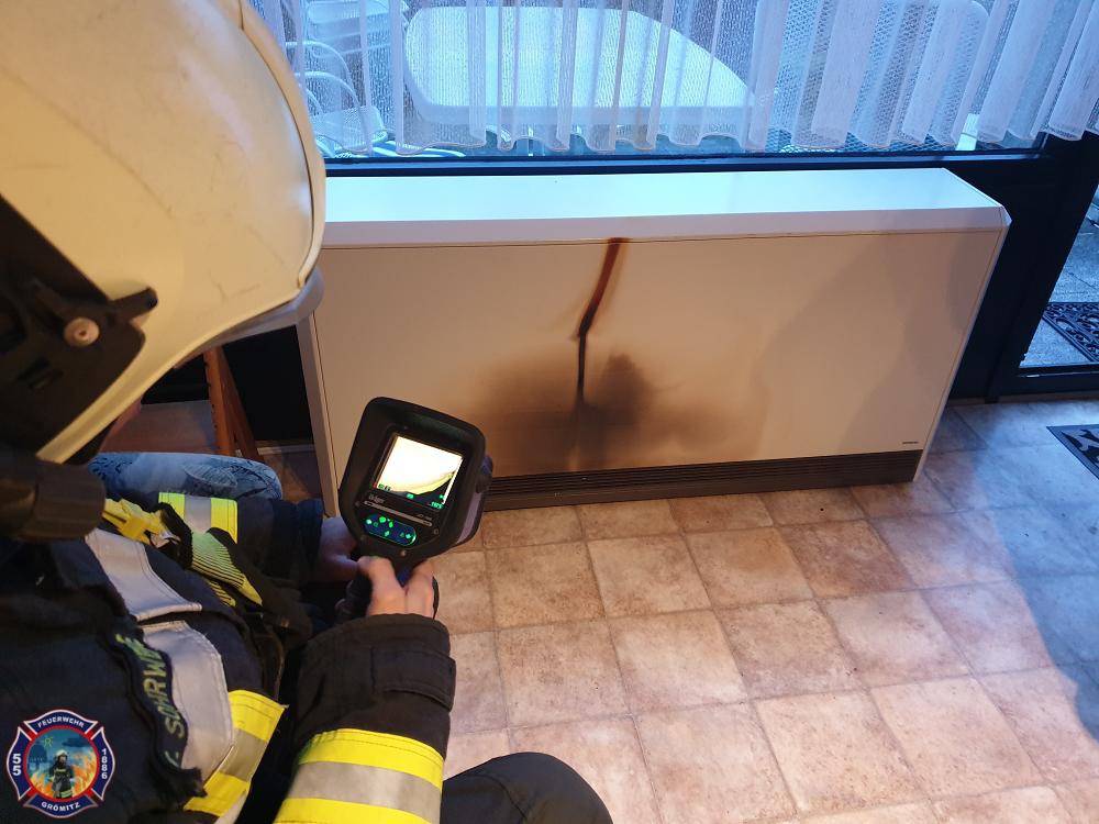 Mehrere piepende Rauchmelder -> Ursächlich war ein aufgeheizter Nachtspeicherofen, der einige - in der Nähe gelagerte - Sitzauflagen in Brand setzte. Das schnelle Eingreifen der Bewohner, nach Ertönen der Rauchwarnmelder, verhinderte Schlimmeres. Wir führten lediglich eine Kontrolle mittels Wärmebildkamera durch und schalteten die betroffene Heizung stromlos. Einmal mehr machte sich das Installieren von Rauchwarnmeldern bezahlt.