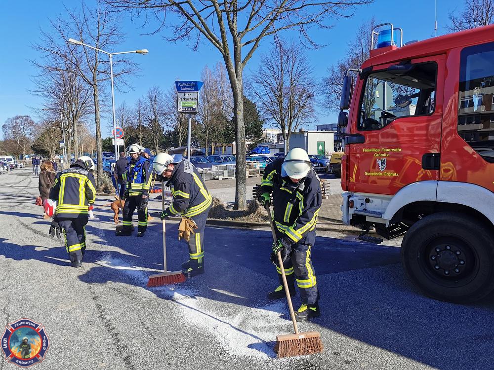 In mehreren Straßen entstanden durch austretendes Öl eines Fahrzeugs Gefahrenstellen. Die am stärksten betroffenen Bereiche wurden durch uns abgestreut. Die endgültige Entfernung erfolgt durch eine Spezialfirma.
