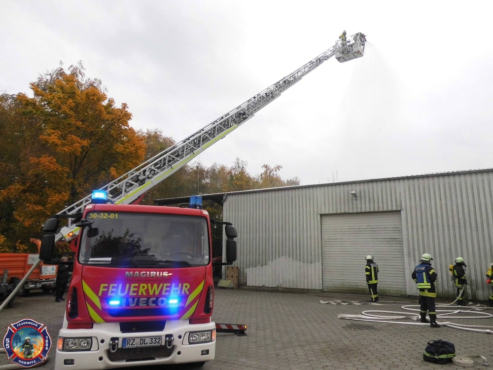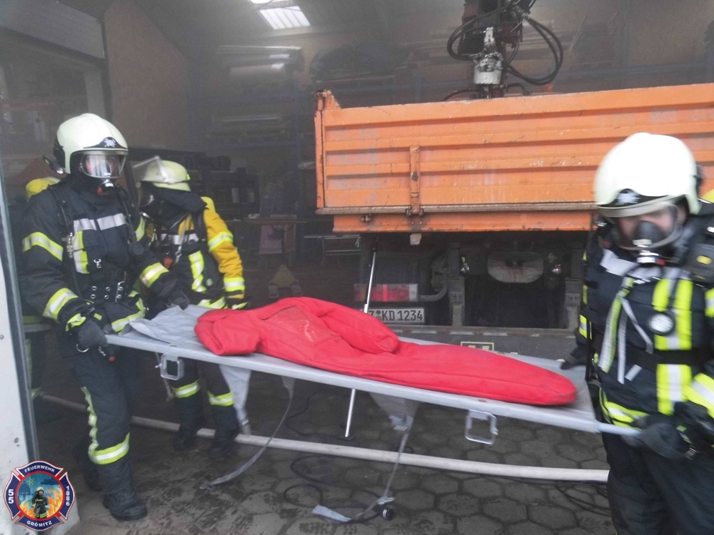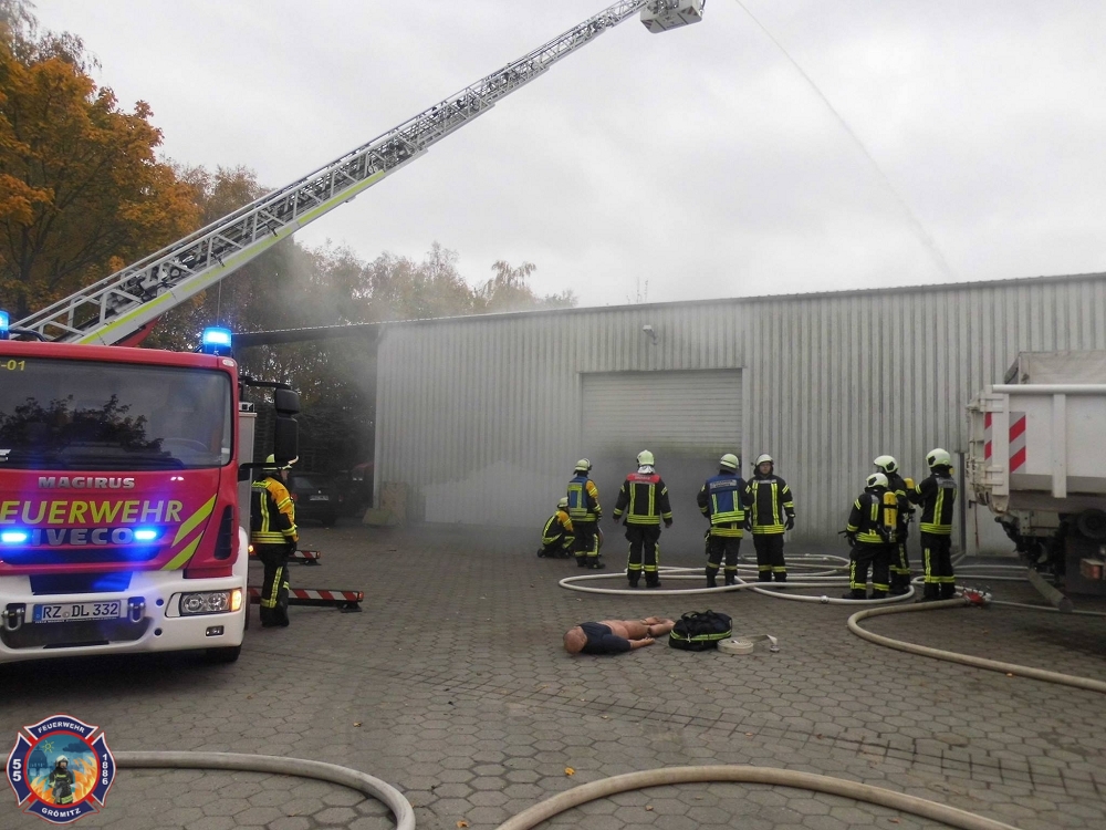 Angenommen wurde ein Brand in einer Lagerhalle. Im Mittelpunkt der Einsatzübung standen die Personenrettung und Brandbekämpfung.
