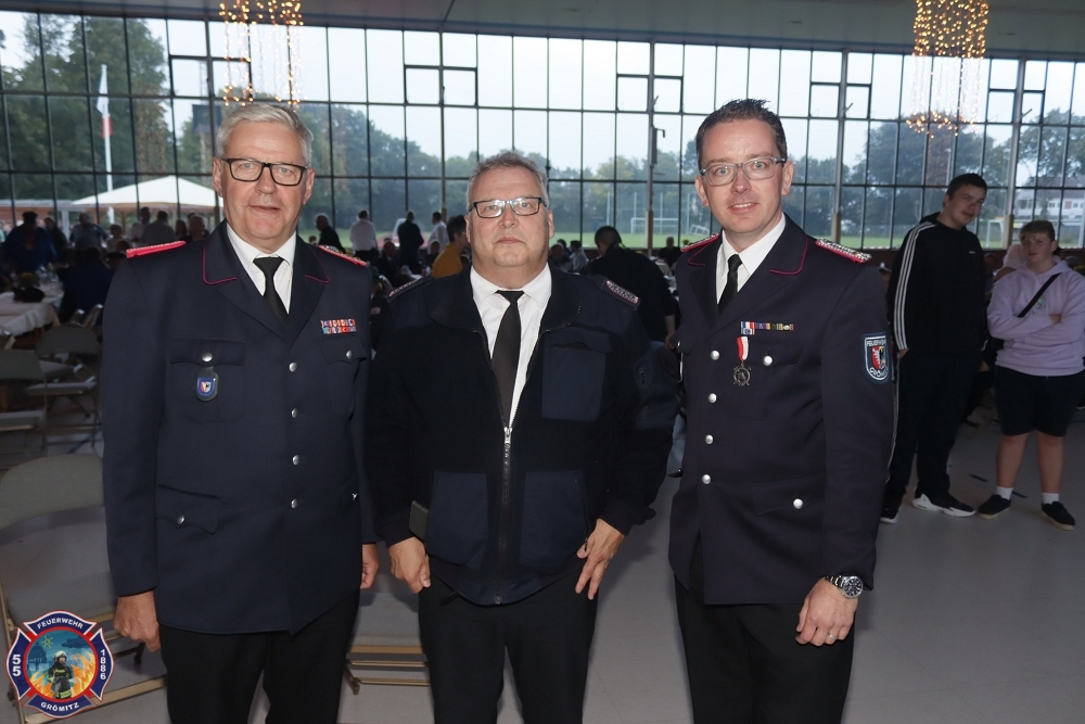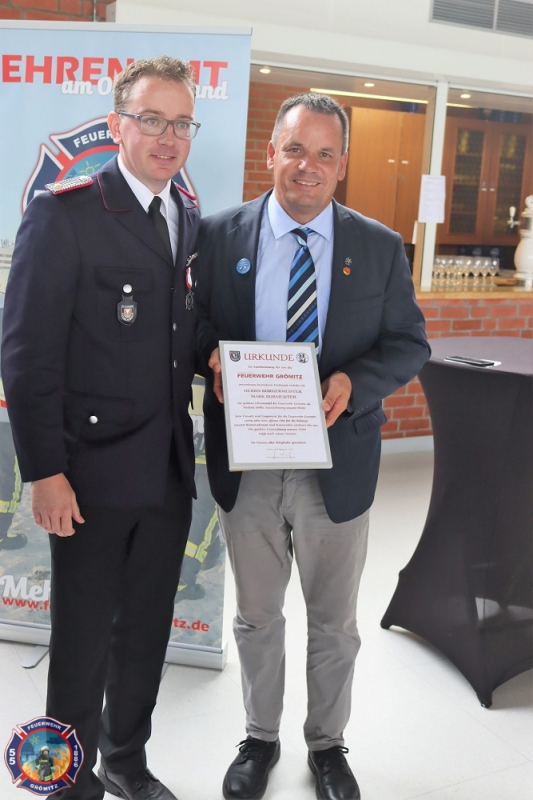 Für seine besonderen Verdienste wurde Bürgermeister Mark Burmeister mit der goldenen Ehrennadel unserer Wehr ausgezeichnet.