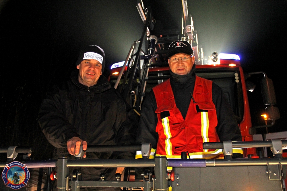 Auch Bürgermeister Mark Burmeister ließ es sich nicht nehmen zu später Stunde am Empfang des neuen Fahrzeugs teil zu nehmen und war sichtlich erfreut über den reibungslosen Verlauf der Überführung.