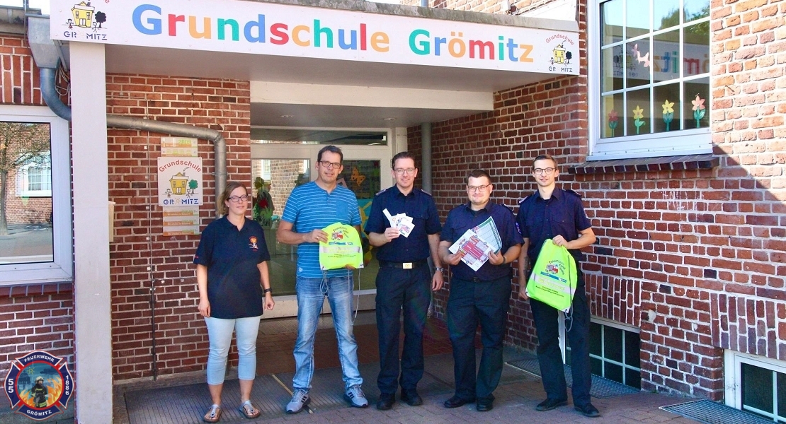 Gemeindejugendwart Kai, Silke von der Kinderfeuerwehr, Pascal von der Jugendfeuerwehr, und unser Ortswehrführer Jacob haben heute Feuerwehrturnbeutel an die kürzlich eingeschulten Erstklässlerinnen und Erstklässler verteilt. 🤩