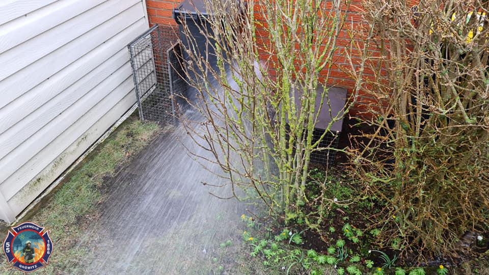An einem Gebäude kam es zum Austritt einer größeren Menge Wasser an einer Außenzapfstelle. Durch das Absperren der Zuleitung konnte der Wasseffluss gestoppt werden.