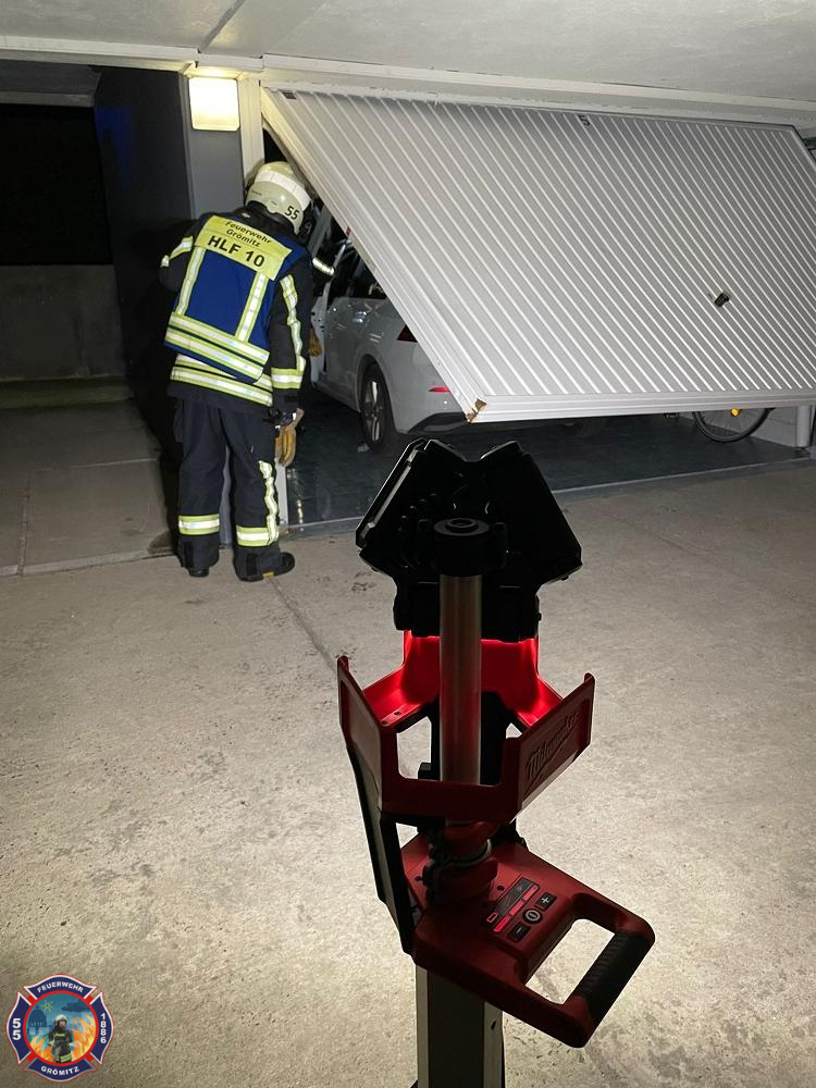 Ein vermuteter Notfall hinter einem verschlossenen Garagentor machte unser Eingreifen erforderlich. |