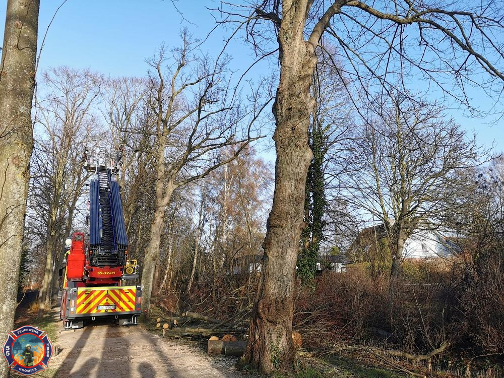 Der Baum wurde mittels Motorkettensäge und Zuhilfenahme der Drehleiter entfernt. |
