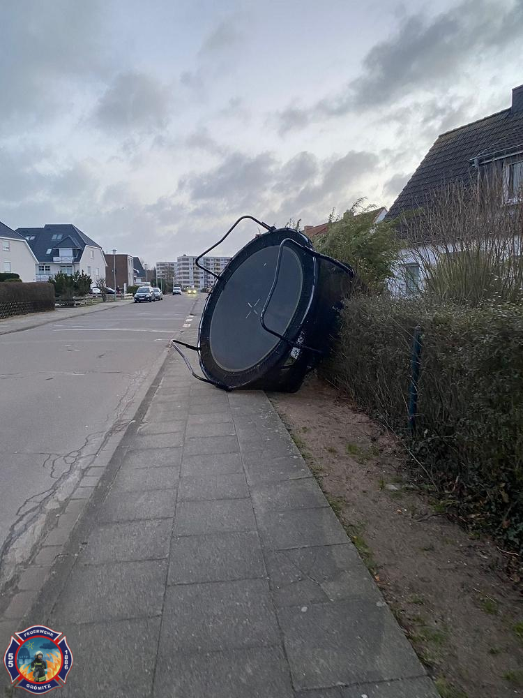 Trampolin durch Sturm losgerissen -> Das Trampolin wurde gesichert, um weiteren Schaden zu vermeiden. |