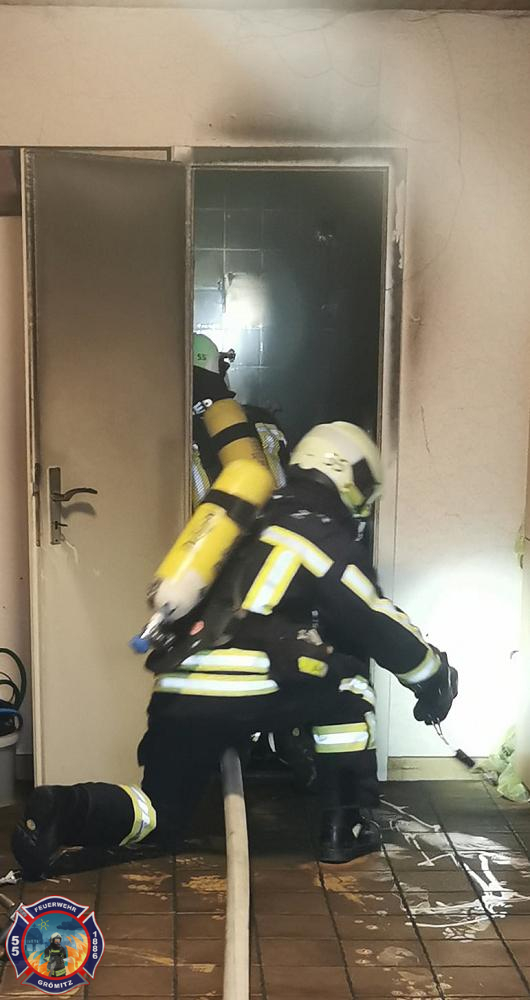 Brennt in Zimmer -> Bereits bei Eintreffen unserer Einsatzkräfte war eine deutliche Rauch- und Geruchsentwicklung im Bereich des betroffenen Raumes feststellbar. Umgehend nach dem Betreten des, stark in Mitleidenschaft gezogenen, Zimmers konnte Feuer aus gemeldet werden.