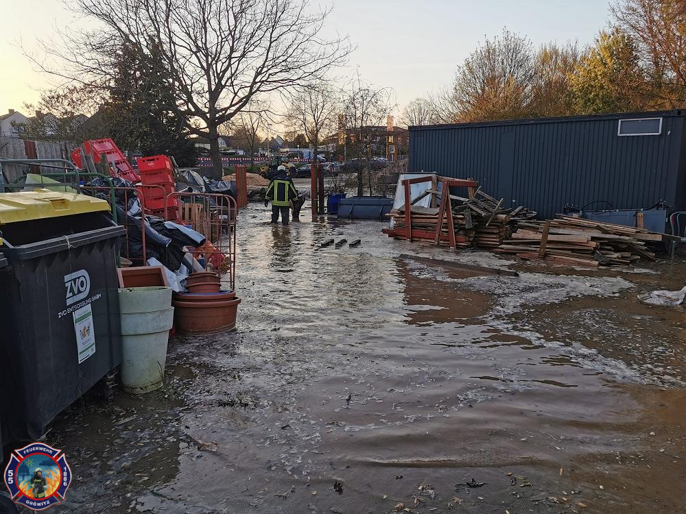 Wasserrohrbruch, Keller drohen vollzulaufen -> In Folge eines Rohrbruch liefen große Mengen Wasser in einen Keller sowie auf das Gelände eines Betriebes. Mit drei Pumpen konnte die Gefahr beseitigt werden. |