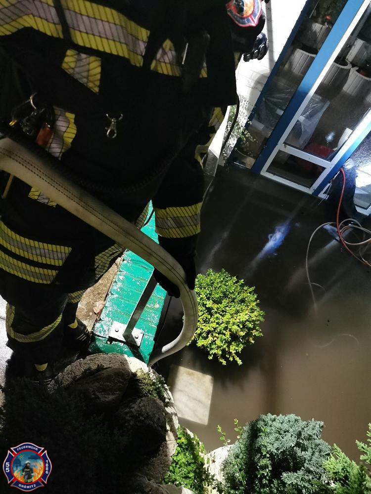 Nach einem witterungsbedingten Einsatz bei uns in Grömitz unterstützten wir die Feuerwehr Kellenhusen auf Grund ergiebiger Regenfälle. |
