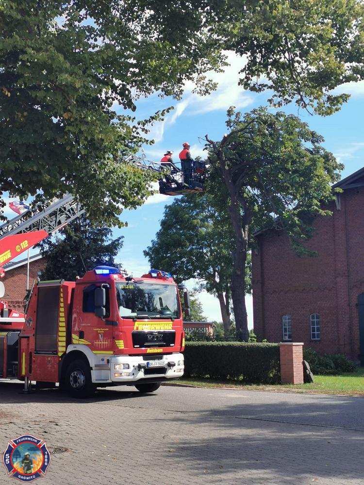 Wir unterstützen die Freiwillige Feuerwehr Guttau bei der Beseitigung größerer Teile eines Baumes, die auf ein Gebäude zu stürzen drohten. Vielen Dank für die gute Zusammenarbeit. |