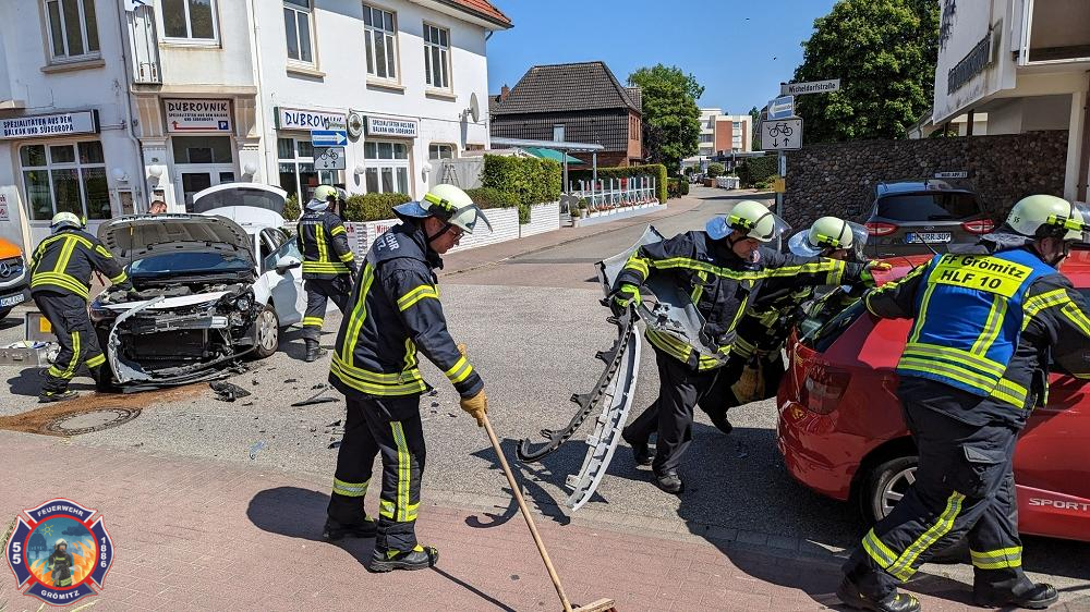 Auf dem Weg zum vorherigen Einsatz meldete die Leitstelle einen Verkehrsunfall in der Wicheldorfstraße. Wir sicherten die Einsatzstelle ab, nahmen Betriebsstoffe auf und befreiten die Straße von Trümmerteilen. |