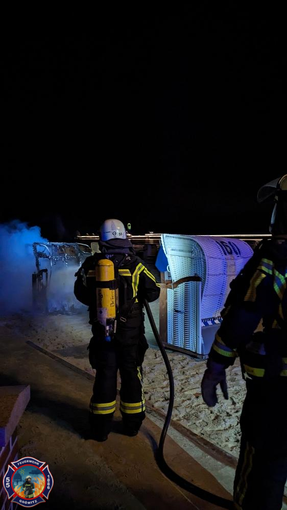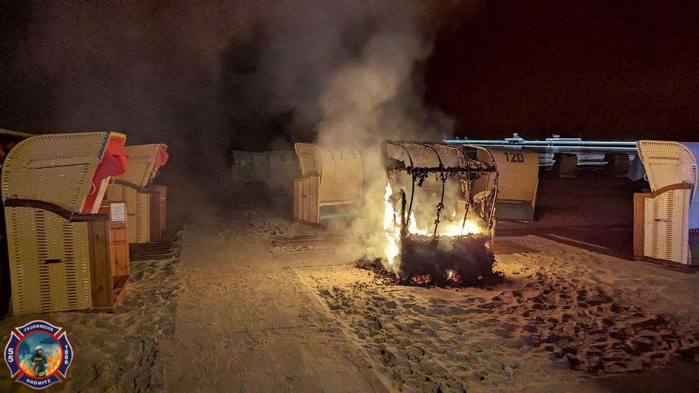 Brennt Strandkorb -> Das Feuer konnte mittels Schnellangriff zügig gelöscht werden.