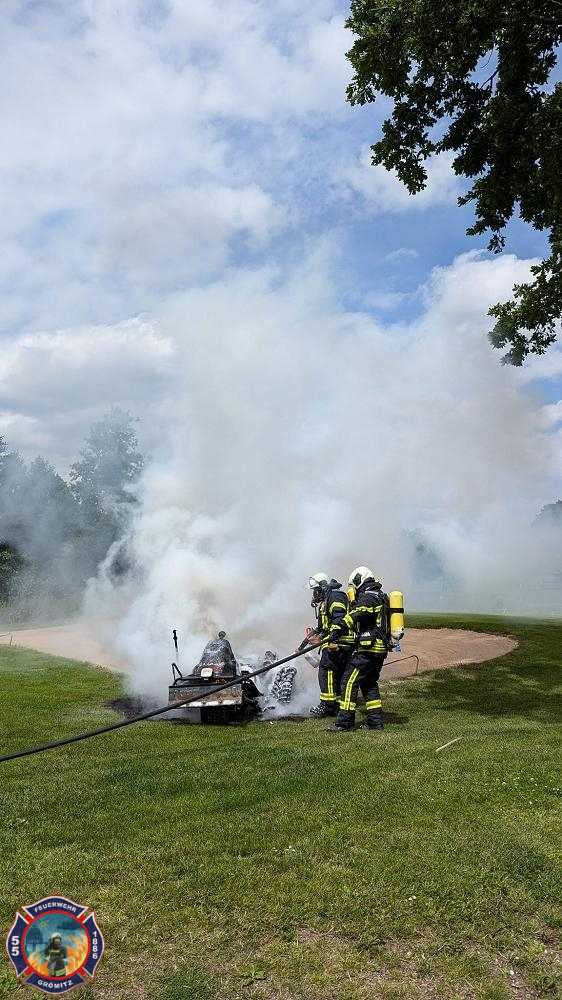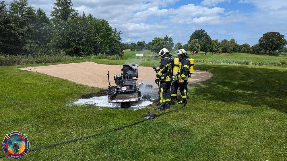 Es brannte ein motorisiertes Arbeitsgerät. Das Feuer könnte zügig gelöscht werden.