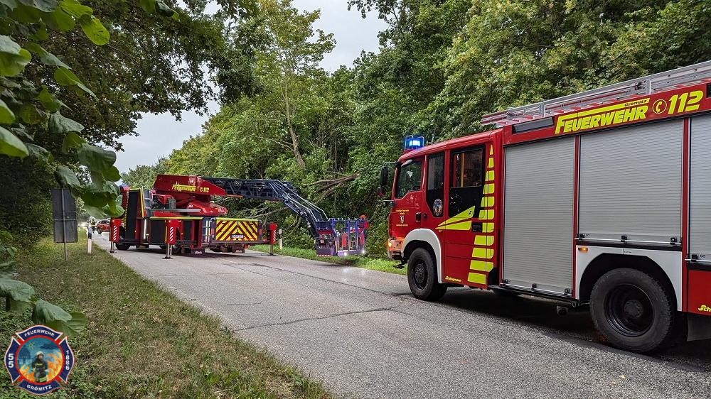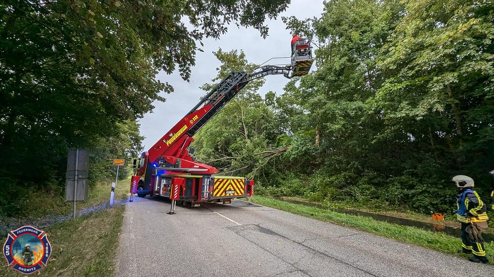 Wir entfernten einen Baum von der Bundesstraße 501. Diese war für die Dauer des Einsatzes voll gesperrt. |