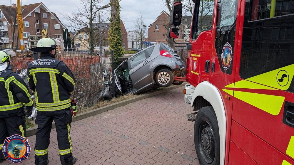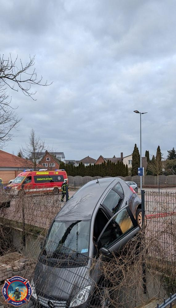 Das betroffene Fahrzeug wurde gesichert und die Fahrerin unversehrt befreit. |