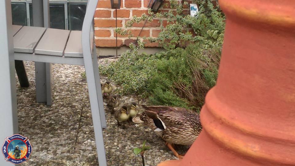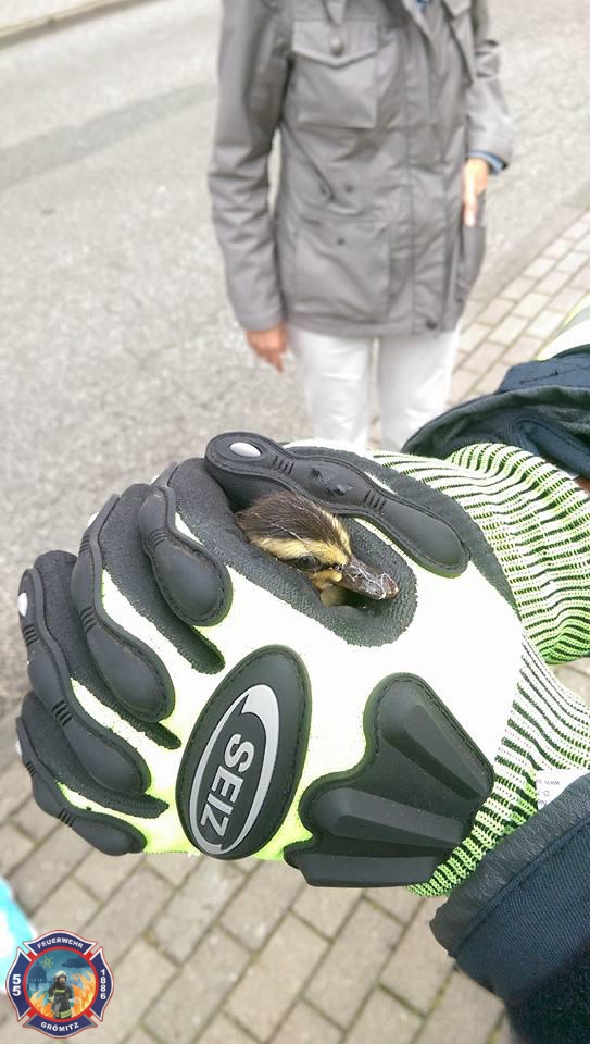 Ein Entenküken hatte sich durch den Sturz in einen Gulli in die Kanalisation verirrt. Nach dem Einleiten von Wasser in das Rohrsystem und einem beherzten Griff, konnte der Ausreißer wieder wohlbehalten zu seiner Familie zurückgesetzt werden. |