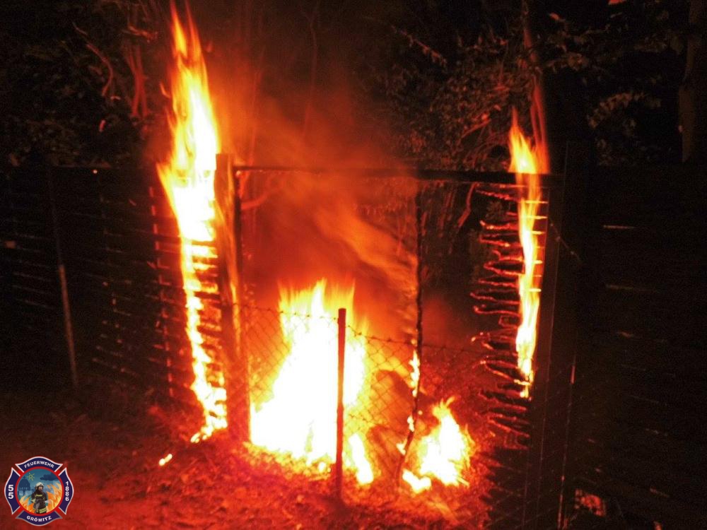 Zusätzlich hatten die Flammen bereits auf den angrenzenden Holzzaun übergegriffen. |