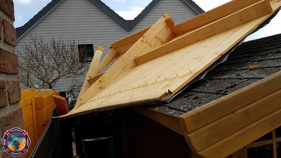 Dach von Gartenhaus weggeflogen -> Wir sicherten das Dach. |