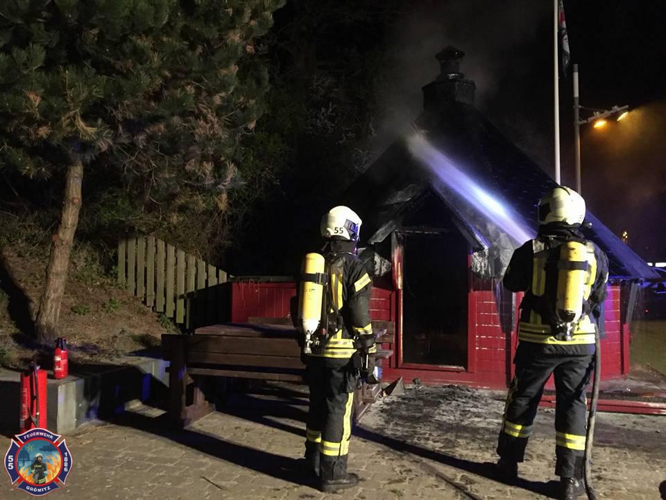 In einer Grillhütte im Yachthafen kam es zu einem Feuer. Mittels Schnellangriff wurde der Brand gelöscht. Unter Einsatz von Wärmebildkamera und Steckleiter wurde der Einsatzort im Nachgang kontrolliert. |