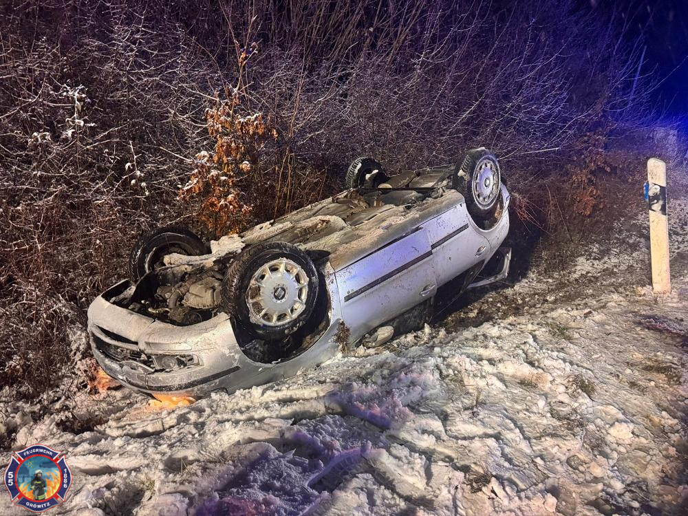 Wir wurden zu einem Verkehrsunfall mit einem überschlagen Pkw alarmiert.